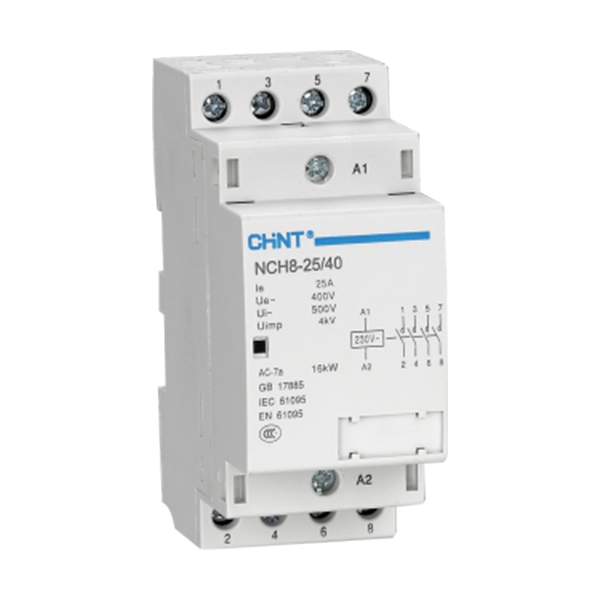 NCH8系列家用交流接触器(以下简称接触器)主要适用于交流50Hz(或60Hz),额定工作电压至400V额定工作电流至63A的电路中,控制家用电器和类似用途的低感微感负载;也可用来控制家用电动机负载,此时控制功率要相应降低